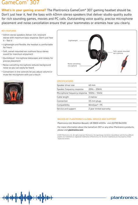 Web web plantronics gamecom 307 (wired headphone): Web plantronics ltd wootton bassett, uk 0800 410014 +44 (0)1793 842200 plantronics gamecom 777 best for: 7.1 surround sound gaming headset with dolby headphone technology (1 page).