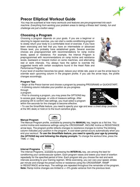 Preset programs helps you focus on a certain type of training. Choose your equipment model below and download a pdf of important information, including assembly guides; Web elliptical trainer precor efx 556 owner's manual.