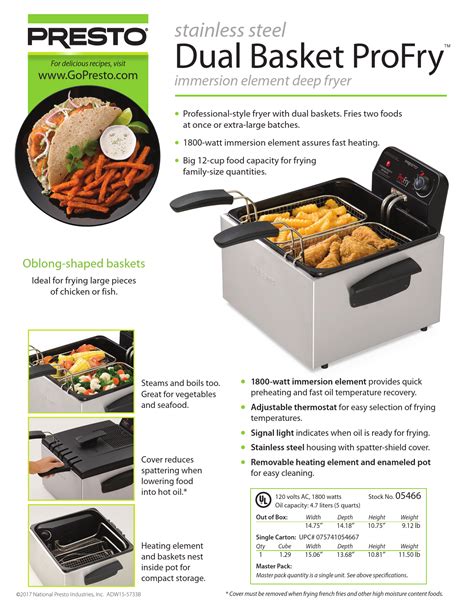 Web Learn How To Safely Operate The Presto Dual Basket Profry With The Included User Manual.