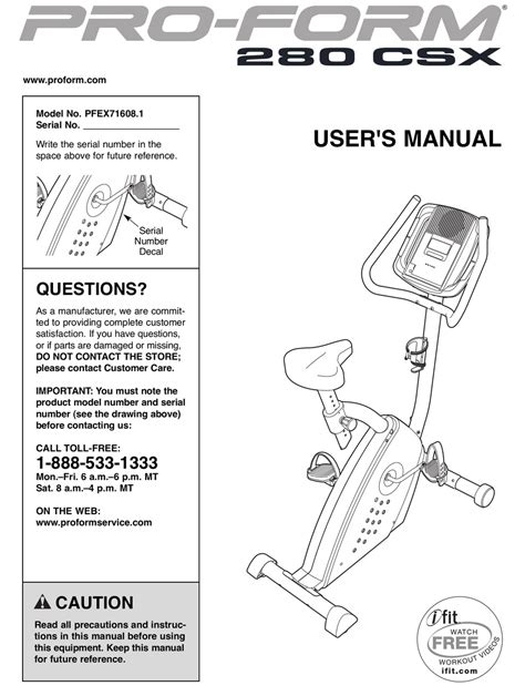 Web View Online Or Download 1 Manuals For Proform 280 Csx Bike.