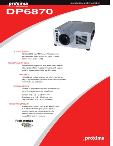 Proxima Proxima Dp6870 User S Guide. An illustration of a computer application window wayback machine. Web user manuals, guides and specifications for your proxima proxima dp6870 projector.