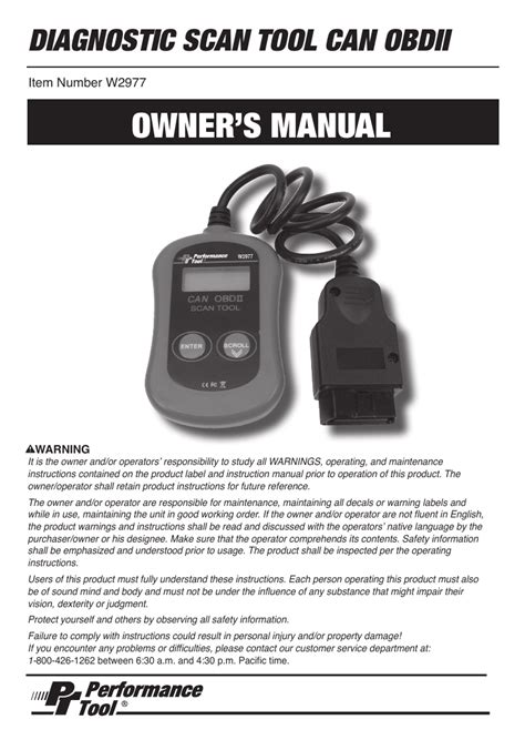 Performance tool w2977 owner's manual. Web performance tool w2977 owner's manual (48 pages) diagnostic scan tool can obdii.