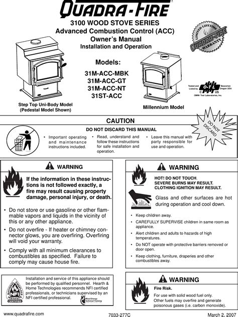 Quadrafire 3100 Manual. 2100 indoor fireplace pdf manual download. Wood insert automatic combustion control, acc.