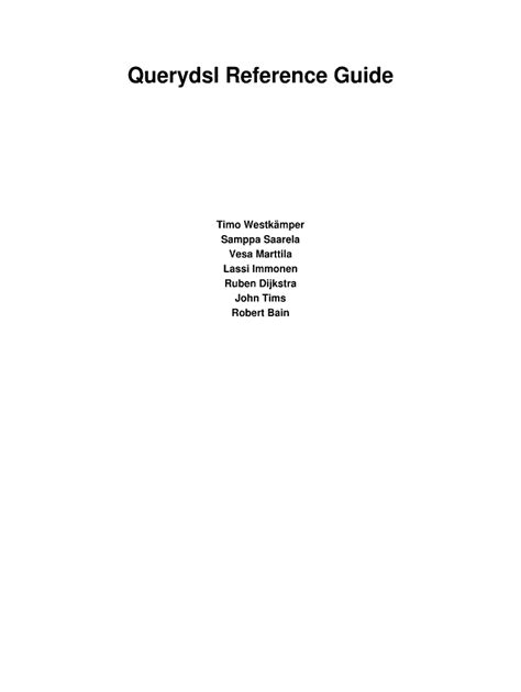 Web web querydsl 5.0.0.m1 querydsl reference guide 2 2. Compound query clauses wrap other leaf or compound queries and are used to combine multiple queries in a logical. Additionally, there also exists javadocs which can be used for more.