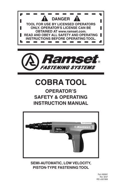 Web shop for ramset cobra powder actuated fastening systems & tools. Ramset cobra tool operator's safety &. Order online today from itw service & parts!