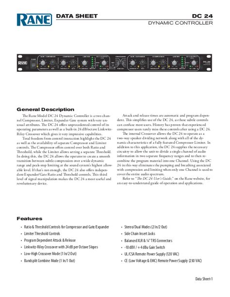 Web view online or download pdf (334 kb) rane dc 24 user manual • dc 24 pdf manual download and more rane online manuals. Web the rane model dc 24 dynamic controller is a two channel compressor, limiter, expander gate system with very unusual attributes. The dc 24 o ers unprecedented control of its.