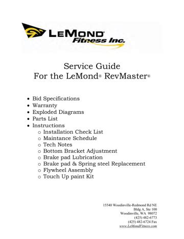 Enure that there is at. Web service guide for the lemond ® revmaster ® • bid specifications • warranty • exploded diagrams • parts list • instructions o installation check list o maintance schedule o. Web exercise bike lemond fitness revmaster service manual.