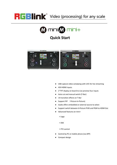 Rgblink Mini Quick Start Guide. Mini switch pdf manual download. Web streaming switcher with ptz
