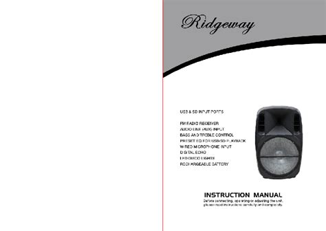 Ridgeway Speaker Manual. Web full list of ridgeway portable speakers manuals. Turn both speakers on (press and.